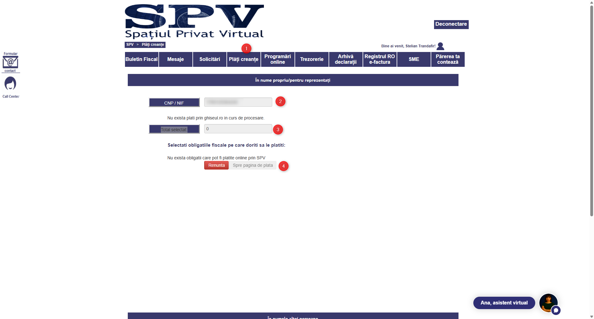 Taxele din Declarația Unică pot fi plătite direct din Spațiul Privat Virtual (SPV) de pe site-ul ANAF.